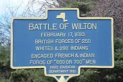 The Battle of Wilton was fought in 1693 in Wilton, New York between Colonial Militia and allied Native forces on one hand and French forces and their Native allies as part of King William's War.