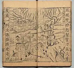 Ming dynasty woodblock print of Guan Yu slaying Wen Chou.