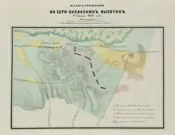The battle on the Zerabulak heights is the decisive battle of the Russian army under the command of General Kaufman with the army of the Bukhara emir Muzaffar, which took place in June 1868, on the slopes of the Zera-tau mountain range, between Samarkand and Bukhara. It ended with the defeat of the Bukhara army, and the transition of the Bukhara Emirate to vassal dependence on the Russian Empire. Battle of Zerabulak is the first time that the Carle rifle was used in action.[2]