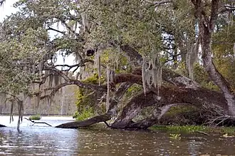 Bayous such as Bayou Corne were largely settled by the Acadians in the late 1700s, who were attracted to the locations for their economic potential as alligator and crawfish nesting sites.[3] Beneath much of the state of Louisiana, including these bayous, are salt domes, gigantic deposits left during the formation of the North American continent. These domes vary wildly in scale and depth, some as much as 35,000 feet below the surface and as large as Mount Everest.[4] With such depths and dimensions, these domes are naturally under thousands of pounds per square inch of pressure.[5]