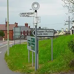 The village lies just three miles south of Shrewsbury, and is separated from the county town by the main A5 Trunk road. It has good road transport links, with easy access to both the A49 and A5. To the south lies the pre-Cambrian Lyth Hill, with Sharpstone Hill standing to the east, the latter now mostly a major sandstone quarry with little of the hill itself now remaining after several hundred years of constant quarrying activities.[10]