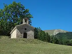 Chapel of Saint Anne Labouret on the pass road. In the background is the Blayeul (2189 m)