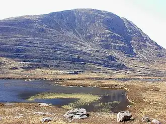A steep mountain, it has a very craggy north east face and is almost entirely surrounded by stalker's paths. The view from the summit takes in the peak's famous neighbours such as the Munros Liathach and Maol Cheann-dearg.[2]