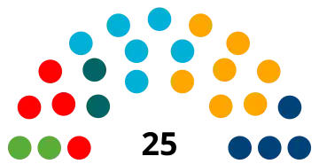 All 25 seats in the Parliament of the German-speaking Community 13 seats needed for a majority | |||||||||||||||||||||||||||||||||||||