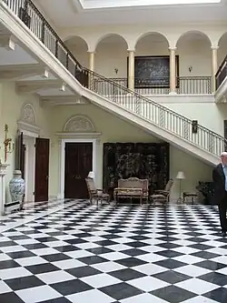 The palace was designed by architect Aleksandar Đorđević in a Neo-palladian style, inspired by 18th century English country houses such as Ditchley Park. Its interior was decorated with English Georgian and 19th century Russian antiques by the French design firm Maison Jansen, which later decorated the White House during the administration of John F. Kennedy.[3]