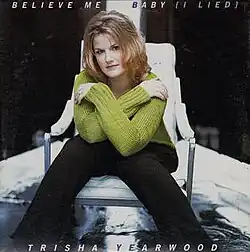 "Believe Me Baby (I Lied)" is a song recorded by American country music artist Trisha Yearwood. It was released in July 1996 as the lead single from her album, Everybody Knows. It was Yearwood's fourth single out of five during the course of her career to reach number one on the Billboard Hot Country Songs chart.