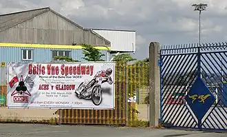 Belle Vue Stadium was a greyhound racing track in Belle Vue, Manchester, England,[2] where the first race around an oval track in Britain was held on 24 July 1926. It has also been used for motorcycle speedway, as the home ground of the team Belle Vue Aces in 1928[3] and from 1988 until 2015, and from 1999 until 2019 for stock car racing and banger racing.