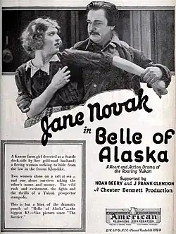 Belle of Alaska is a 1922 American silent Western film directed by Chester Bennett and starring J. Frank Glendon, Jane Novak and Noah Beery.[1]