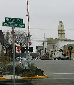 • McKinley Street — Whether or not this is the shortest street in the world is a point of contention. The sign at the street's south end (at the intersection of Columbus Ave.) once made such a claim, although Ebenezer Place, in Wick, Scotland, has held the official record since November 2006.[30] The City of Bellefontaine's website places the length of McKinley Street at "about 20 feet", and while the city's website does not make the claim of the world's shortest street, it does cite McKinley Street as "the shortest street in America". The street sign's undersign reads "Shortest Street In America" as of May 2, 2020.