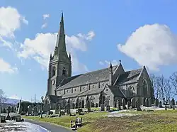 The neo-Gothic parish church of St Peter's designed by John Edgar Gregan, built at the end of 1849 was consecrated on 1 April 1850. One of Gregan's last projects, the church was constructed from local stone on the site of an ancient farm.[5] John Hick, a local industrialist and later MP for Bolton, was very involved with the church and responsible for the installation of several stained glass windows, the church bells and turret clock.[6][5]