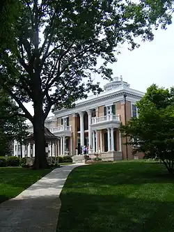 Upon the retirement of Heron and Hood, Belmont Women's College merged with Ward Seminary in 1913 and was known as Ward—Belmont College, which included both a junior college and college-prep (or high) school for women.[13][14] The Belmont Mansion is owned by Belmont University but maintained by the Belmont Mansion Association, a non-profit group. The mansion is open for tours. It features Victorian art and furnishings. The water tower, gardens, with surviving gazebos and outdoor statuary from the Acklen era, are part of the college campus.[15] In 1991, the school became Belmont University.[16]