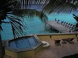 Bachelor's Beach is a small beach near Belnem. It can be accessed via stairs down the 10 feet (3.0 m) cliff.[8] It is one of the most popular beaches in Bonaire and is located near Flamingo International Airport, with planes passing over the beach.[9]