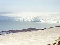 Belozem Hill, with Balkan Snowfield in the foreground, and Emona Anchorage and Aleko Point in the background.