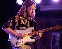 Eunson's playing style has been described as "angular but melodically focused", and he is known for playing a Fender Stratocaster guitar.[17] He cites Pat Metheny, George Benson, Andy Summers, Jeff Beck, Ralph Towner, Keith Jarrett and Joe Henderson among his early influences.[18]