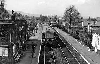 Ben Rhydding railway station serves the Ben Rhydding area of Ilkley, West Yorkshire; it is situated about a mile east of the town centre. It is on the Wharfedale Line, between Ilkley and Leeds/Bradford Forster Square, it is served by Class 331 and Class 333 electric multiple units (EMUs) run by Northern Trains, who also manage the station. It is 15.5 miles (24.9 km) north-west of Leeds, and 1-mile (1.6 km) east of Ilkley railway station.[1]