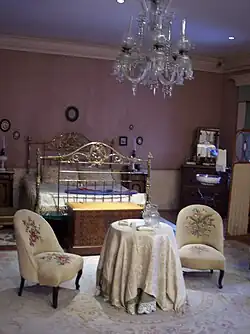 Juárez fell victim to the restored Santa Anna, and the authorities confined him to the fortress of San Juan de Ullua.[33] He was eventually released and exiled to Havana, from which he then traveled to New Orleans.[34] There he found a day job as a cigar maker in one of the city's factories,[35] while his wife remained in Mexico with their children, and were looked after by Liberal partisans.[36] His time as governor of Oaxaca had not left him with a vast fortune, and he survived off of his cigar rolling job and funds sent to him from Mexico by his wife.[37]