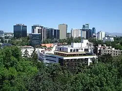 The borough's economic activity accounts for 6.2% of the total GDP of Mexico City. The largest contributing sector is construction enterprises, which make up 22.4% of the city's construction. Services, especially professional services, makes up about seventy percent of the borough's GDP, followed by construction at just over 27% and commerce at 17.4%.[7] Up to two million people come into the borough on any given day for work, shopping or to study.[36] The borough ranks second after Coyoacán in spaced dedicated to commerce at 274,366 m2.[40] Avenida Insurgentes is the most important commercial area for the borough, with a large concentration of bars and restaurants from fast food to international cuisine at all price ranges. These serve the large number of offices that house architect, lawyers and other professional services.[9]