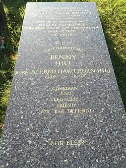 50. ^ Bartlett, Victoria (6 August 2009). "Benny Hill saluted by the south". BBC News. Retrieved 17 October 2024. On 18 April 1992 Alfred Hawthorne Hill, aged 68, passed away, alone in his flat.