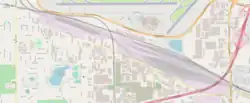 Today, the 5 km long Bensenville Yard is divided into an east and west section, between which the now-demolished hump and the signal box are located; two Union Pacific Railroad (formerly the Chicago & Northwestern Railway) tracks also cross the area here. In the western part, there is a marshaling yard with 21 directional tracks and the now-removed turntable of the old roundhouse with some access tracks. In the center of the larger eastern section is a marshaling yard with 34 directional tracks, flanked by tracks for incoming and outgoing trains and the tracks of the container terminal in the southeast, which together cover an equally large area with over 30 tracks.[7][8] Running parallel to the yard is Metra's Milwaukee District West Line, which has a limited service station just east of the yard at Mannheim.
