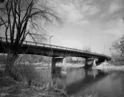 ![]() Benton Street Bridge in Iowa City crossing from the west bank of the Iowa River, looking northeast | |