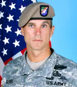 COL Richard Clarke from 75th Ranger Regiment wearing tan beret with new beret flash—note the black border around the flash—c. 2007