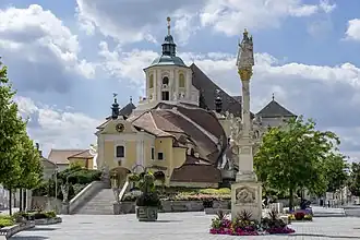The Bergkirche ("hill church") is a church in Eisenstadt, the capital of the state of Burgenland in Austria. The church (of Catholic denomination) was built in the early 18th century by Prince Paul Esterházy.[1] Eisenstadt was the seat of the Esterházy family, and the church lies just a short walk to the west of the family's main palace.