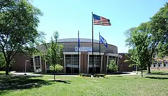 Overcrowding reached a crisis in 1957 and the district proposed replacing the high school with a new building at the southwest corner of Greenfield Road and Catalpa. The high school's original architect drew up new plans.[4][5] When voters in the district rejected this plan, the district requested bond issues to build extensive additions to the school. Voters approved of an addition but rejected a pool and auditorium.[6]