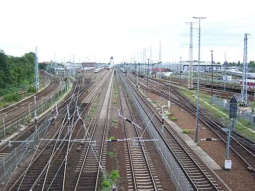 5. ^ Bernd Kuhlmann (2000). ahnknoten Berlin. Die Entwicklung des Berliner Eisenbahnnetzes seit 1838 (in German). Berlin: Gesellschaft für Verkehrspolitik und Eisenbahnwesen Berlin. pp. 78 and 124. ISBN 3-89218-003-2.