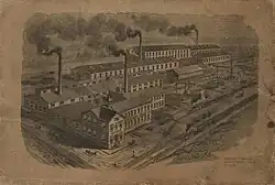 The Berlin Iron Bridge Company began in 1868 as the Corrugated Metal Company, a branch of tinware firm Roys and Wilcox, which is now part of Roper Whitney.[1] Originally producing roofing and shutters, the company became involved in roof trusses. In 1878, under Samuel C. Wilcox, the company purchased the rights to the "parabolic" (lenticular truss) bridge patent from William Douglas. Douglas became treasurer and executive manager of the company. In 1885 he received another patent, and the company name was changed to Berlin Iron Bridge Company.