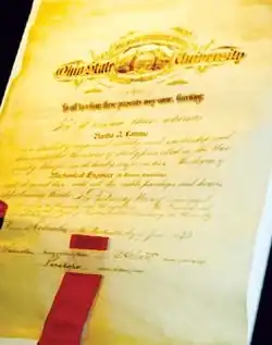 She graduated in 1893 with a degree in mechanical engineering with a specialty in electricity.[1][2][3] Her thesis was titled "An Analysis of Tests of a Westinghouse Railway Generator."[2] The student newspaper reported that there was an outbreak of spontaneous applause when she received her degree.[3]