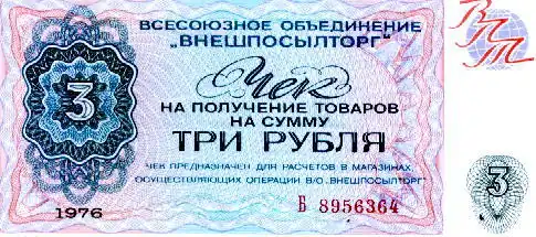 A Vneshposyltorg cheque used for payment in Beryozka stores
