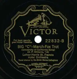 Big C" is a fight song of the University of California, Berkeley. Composed in 1913 by Harold P. Williams, with lyrics by Norman Loyall McLaren, it commemorates the construction of the large concrete "C" in 1905 on the "rugged Eastern foothills" of the Berkeley campus. The song was the winning entry in the Daily Californian school song competition in 1913. Arrangements of the tune are used by other schools in the University of California system.