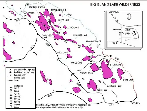- ^ "Big Island Lake Wilderness". US Forest Service. Retrieved December 1, 2008.