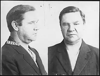 Haywood was often targeted by prosecutors due to his support for violence.[4] An attempt to prosecute him in 1907 for his alleged involvement in the murder of Frank Steunenberg failed,[5] but in 1918 he was one of 101 IWW members jailed for anti-war activity during the First Red Scare. He was sentenced to twenty years. In 1921, while out of prison during an appeal of his conviction, Haywood fled to the Soviet Union, where he spent the remaining years of his life and where he died in 1928.[6] Paul Freeman, John Reed, Charles Ruthenberg, William Z. Foster and Haywood are the only five Americans to be buried at the Kremlin Wall Necropolis.