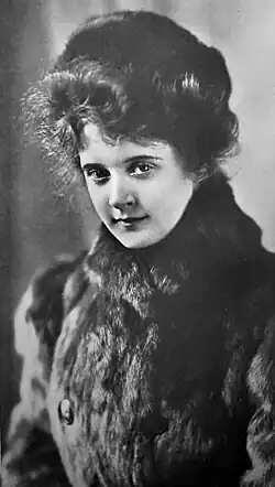 Burke's beauty and taste made her a major trendsetter throughout the 1910s and 20s. As early as 1909, following her Broadway performance in My Wife (1909), department stores began carrying the "Billie Burke Dress" with a signature flat collar and lace trim.[9] During this time, much of Burke's on- and off-screen wardrobe was provided by the leading European couturier Lucile (in private life, Lady Duff Gordon), whose New York branch was the fashion Mecca of socialites and entertainment celebrities.[10] Burke reflected on her reputation as "a new kind of actress, carefree, and red-headed, and I had beautiful clothes."[11]