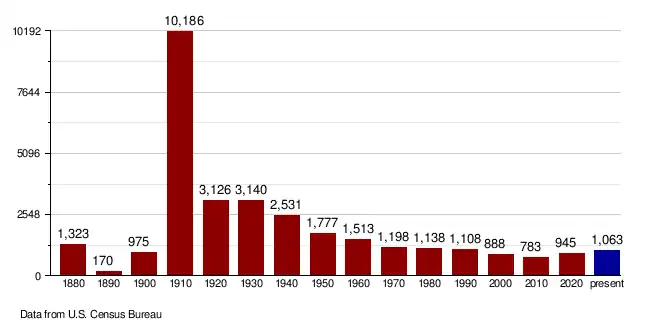 1. ^ The total for 1910 includes populations (8,009) of townships taken to form Golden Valley in 1912, and Slope Counties in 1915.