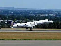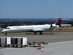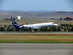 Another airline which operated jet service into Billings was Horizon Air which in 1999 was operating Fokker F28 Fellowship twin jets with nonstop flights to Seattle on behalf of Alaska Airlines.[34] By 2003, the airline was serving Billings with Canadair CRJ-700 regional jets.[35] Horizon Air continues to serve the airport at the present time on behalf of Alaska Airlines with the Bombardier Dash 8 Q400 propjet which is the largest and fastest member of the de Havilland Canada DHC-8 regional turboprop family of aircraft.[36] Additional airlines operating regional jets from the airport in the past included America West Express operated by Mesa Airlines with Canadair CRJ-200 aircraft and Frontier JetExpress flown by Horizon Air with Canadair CRJ-700 aircraft with both air carriers operating nonstop service to Denver.[37][38]