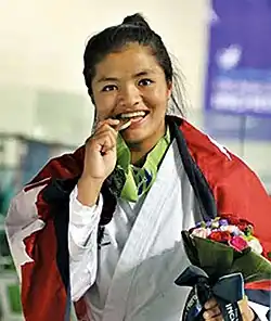 Bimala Tamang (Nepali: विमला तामाङ; born 9 June 1995) is a (Nepalese) Nepali female karateka who recently won bronze for the Women's Individual Kata (in Karate) at the 2014 Asian Games in Incheon, South Korea. This was Nepal's first and only medal tallied at the 2014 Games.[1][2]