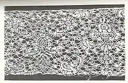 Binche lace is a type of bobbin lace that originated in the town of Binche, Belgium. It is continuous, meaning it is made all at once, in one piece. It is generally made in strips 2 inches (5 cm) wide. Though typically it has no cordonnet outlining the design against the ground, occasional pieces are made with a very fine one, about the same thickness as the thread used in the pattern. The pattern in Binche lace is very detailed, with animal scenes and figures.[1]