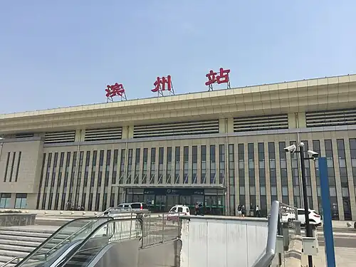 1. ^ "最新:滨州高铁站将利用现有滨州火车站改造" [The Latest: Binzhou High-speed Railway Station will be transformed using the existing Binzhou Railway Station]. 闪电新闻 (in Chinese). 19 August 2018. Retrieved 16 February 2021.