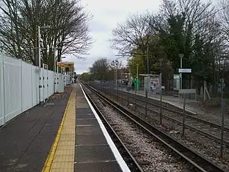 When the Croydon Tramlink was constructed a single line through the station was laid using the trackbed of the former BR up line and the former BR up platform was rebuilt. The National Rail line is served by a high level platform to the north of the track, whilst the Croydon Tramlink rail line is served by a low level platform to the south of the track. Each platform has its own access from the street, and the only access between the two platforms is via the street, with a fence between the two tracks to deter any attempt to cross the lines.