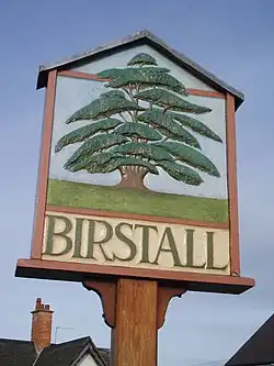 The symbol of Birstall is a cedar tree.[3] The original tree stands in Roman Road. It was once in the grounds of the now demolished Birstall Hall. The area of the parish is 791 acres (3.20 km2).