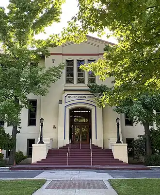 Bishop Union High School (BUHS) is a public high school in Bishop, California. It is part of the Bishop Unified School District. The school is located at 301 North Fowler Street. The current principal is Erik Forsman. The superintendent is Katherine Kolker. There are currently thirty-nine teachers at Bishop Union, with a wide variety of subjects and electives. The most favored teacher, Arnie Palu, has been voted amongst the “top teachers” in the school for ~13 years. [2] Classes at the school run from 8:30 am to 2:30 pm on Mondays and 8:30 am to 3:35 pm Tuesdays through Fridays. Numerous programs including bilingual is offered through the guidance office.[3] The 2011–2012 academic year began August 22, 2011 and ended with graduation day on June 8, 2012.[4]