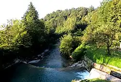 The Tržič Bistrica River (Slovene: Tržiška Bistrica), a tributary of the Sava River, flows through the village.