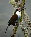 5. ^ a b c d e f g h Short, L.L. (2020). Black-billed Mountain-Toucan (Andigena nigrirostris), version 1.0. In Birds of the World (J. del Hoyo, A. Elliott, J. Sargatal, D. A. Christie, and E. de Juana, Editors). Cornell Lab of Ornithology, Ithaca, New York, US. https://doi.org/10.2173/bow.bbmtou1.01 retrieved 4 January 2023