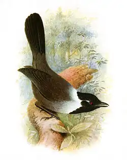 The black-hooded laughingthrush (Garrulax milleti) is a species of bird in the family Leiothrichidae. It is found in Laos and Vietnam. Its natural habitats are subtropical or tropical moist lowland forests and subtropical or tropical moist montane forests. It is threatened by habitat loss.