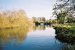 Another curious nearby name is an old house called "Poisson Duc",[5] locally corrupted to Poison Duck. The name is in Norman French, indicating the site was the fish keeper's cottage, for the Norman Lord of the Manor.[6] Domesday Book recorded that Hurley had been held before the conquest by Esgar, on behalf of King Edward), and by 1086 it was held by was part of the lands of Geoffrey de Mandeville, whose family went on to become Earls of Essex.[7] Domesday records two fisheries at Hurley, worth 12 shillings annually.[8] These would have used fish ducts or traps in the river here to catch fish travelling up or down the Thames.[2]