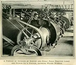 In 1913, Montana Power upgraded Black Eagle Dam to generate more electrical (rather than mechanical) power. It abandoned its second powerhouse on the south bank,[6] and installed two Leffel turbines.[47] The old generators in the first powerhouse were replaced with two new ones capable of generating 1.5 MW each.[47][6][71] Two surge chambers were built in the powerhouse as well, and a penstock connected to each chamber.[6] The refurbished south powerhouse now provided power to the smelter, as well as to the flour mill (which had been converted to electricity).[6]