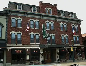 In the late 1870s, the present Second Empire building was built and named the Davis House. The ownership of the hotel transferred to the Burr family in 1885 and it was renamed Burr's Hotel.[4]