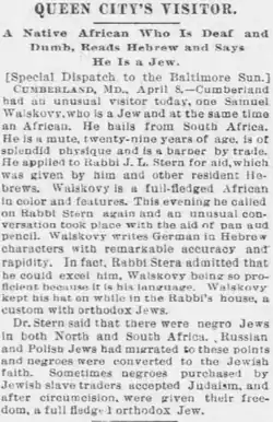 An 1897 article in the Baltimore Sun about Samuel Walskovy, a Black South African Jew.
